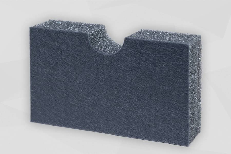 Yüzeyi alüminyum folyo ile lamine edilen melamin (Bastotect® den) bazlı gri renkli süngerdir.