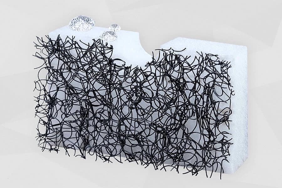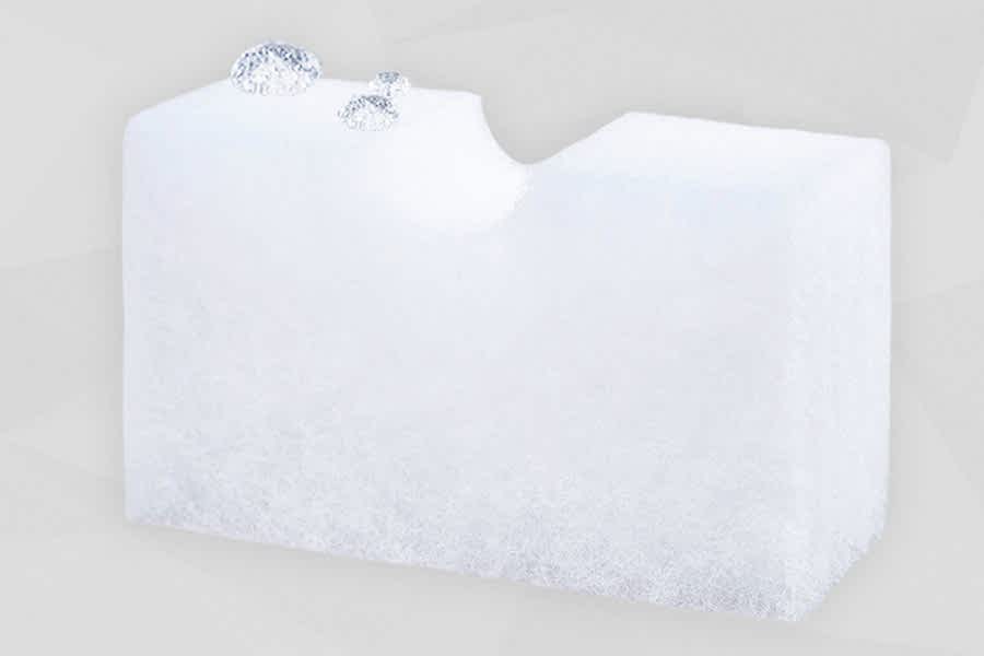 Melamin bazlı yumuşak sünger (Basotect®'den), yağ ve su itici özellikleriyle.